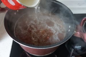 彻底冲凉的红豆再次放进冷水锅,开大火煮。