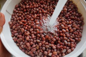 首先红豆一定要用水浸泡一晚,也就是12小时以上,夏天比较热可以放冰箱冷藏浸泡。
