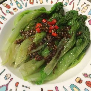 水煮开放几滴橄榄油,生菜煮几秒钟就可以,捞出沥水