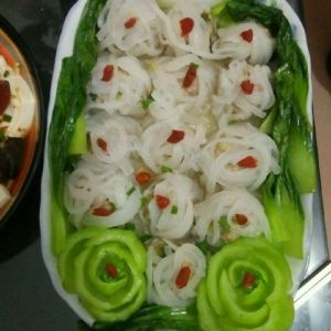 肉陷搓成一个个的肉丸,把萝卜丝包住肉丸