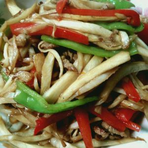合照 肉丝 茭白切丝 青椒红椒切丝