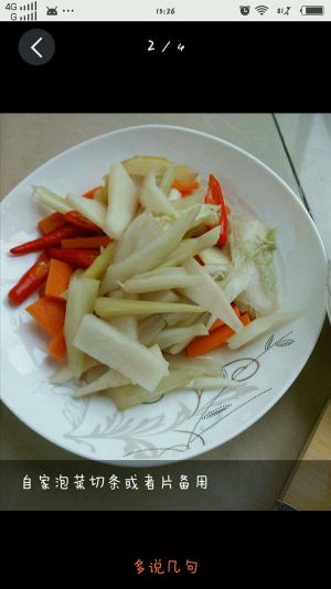 自家泡菜(菜谱里有配方)切成薄条状备用