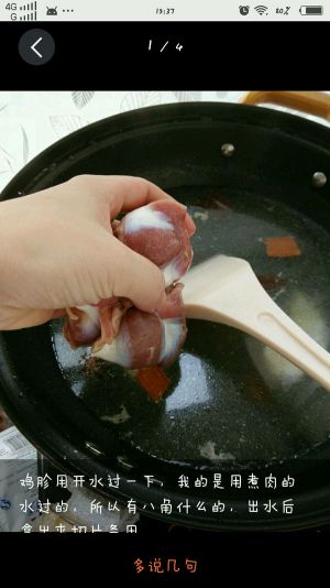 鸡胗过水,取出放凉,再清洗一遍切片备用