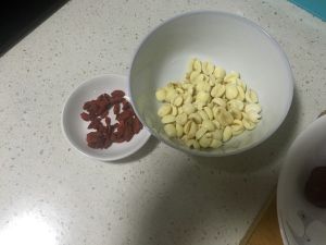 枸杞洗净,莲子洗净,剔去莲芯,如果各位亲用的是超市买的干莲子,建议提前一天晚上泡上水,如果是晚上煮汤,那就清晨泡上水,这样比较好煮,省时省燃气