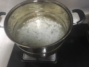 锅中加水放入银耳,煮开后转小火炖煮30分钟