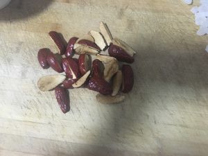红枣切成小条,比较方便煮,汤羹也比较容易入味,也可以不切,这个随个人喜好。