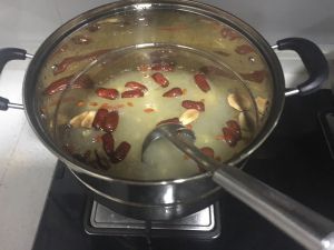 然后放入红枣,枸杞,莲子,冰糖,再炖煮40分钟就可以了