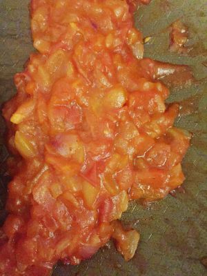 炒披萨酱,油热放洋葱丁炒至略微变色,加蕃茄丁炒至略软,加番茄酱炒至完全变软加糖盐各一小勺出锅放凉待用