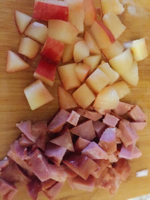 切好李子丁和火腿丁