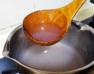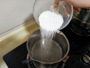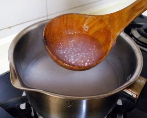 当西米外部透明,只有中间有小白点时,关火,盖上锅盖。再继续焖5分钟。