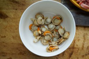 扇贝肉因为刚从冷冻层拿出来,这要提前解冻,仔细处理,去除内脏(就是会有黑黑的地方) 扇贝肉可根据喜好选放,我就是刚好处理存货而已~~