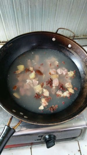 先翻炒牛腩加两铲料酒,后加入胡萝卜等翻遍1分钟左右后加水漫过材料2cm后煮10~15分钟后加入咖喱块!