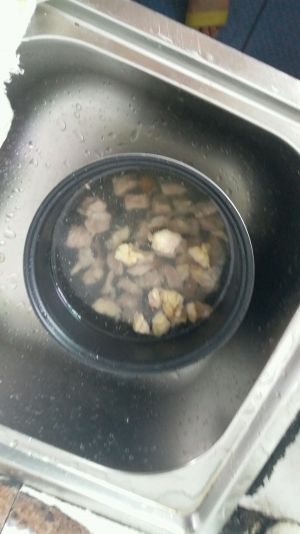配菜,腌制牛腩入味,加入料酒,盐和一点胡椒粉