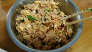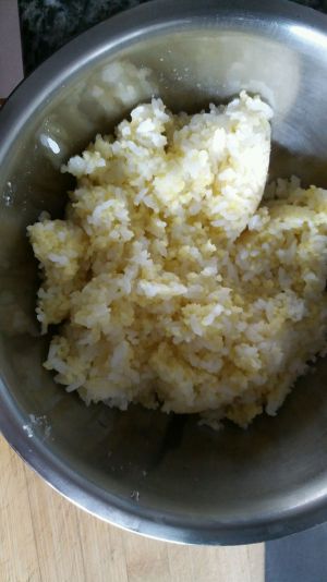 准备好凉的米饭,我用的大米混小米,纯大米饭好一些