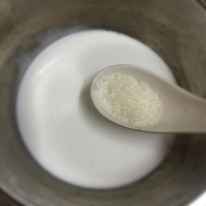 开小火,煮至白糖融化,关火,边煮边搅拌以防粘锅。