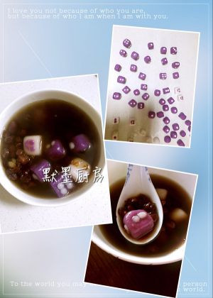 把紫薯煮熟揉于糯米粉中,分成两份。一份白色、一份紫色。