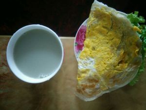配上绿豆浆,营养又快手的早餐完成了,不喝豆浆可以换牛奶,酸奶都行哦