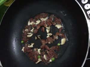 腊肠香菇爆油。前面我已经煲好了饭,晾凉。煮饭时下点油跟盐,这样饭有点咸味,后面配料就不用下太咸。