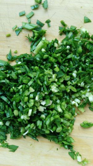 韭菜切碎。
