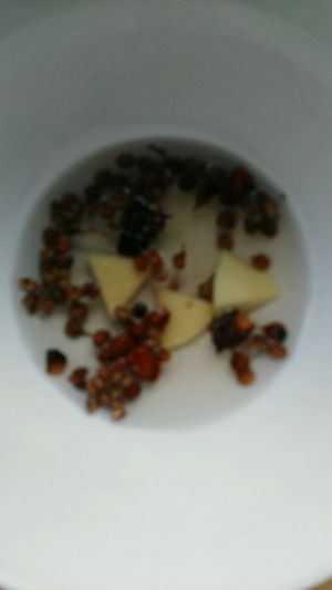 八角、花椒、姜片少许开水冲。