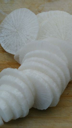 白萝卜洗净,切片。