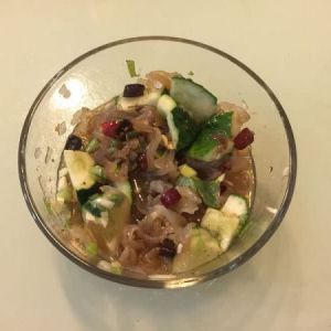 准备。海蜇皮充分浸泡半天,沥水备用;黄瓜切滚刀块拍碎(我家案板不行就直接切的);辣椒切小段;葱姜蒜切沫。