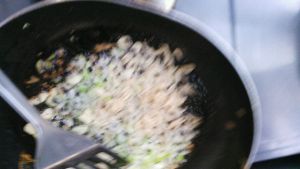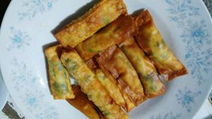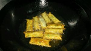 热油放葱姜蒜、虾皮爆香,放切好的豆腐皮、韭菜、蛋饼丝翻炒一下关火,加盐、鸡精调味