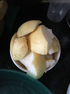 雪梨我是没去皮的、我用盐水泡一泡、现在的水果蔬菜多农药、不想去皮就泡泡