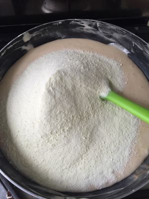 倒入烤盘里,铺上吸油纸,用擀面杖压平。