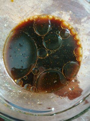 用一小碗调好生抽,香醋,香麻油,麻辣粉,糖,盐。