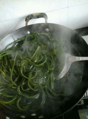只顾着着急想吃的心情,所以做的过程都忘拍照了。市场买切好的海带丝,煮沸8-10分钟捞起凉水冲洗滤水备用。(再做一次,把图给补上了)