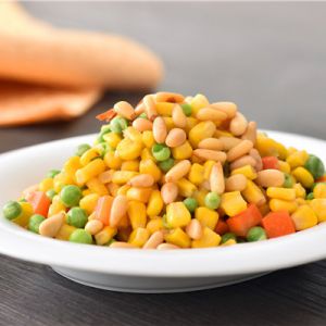 锅做水烧开,先把豌豆放入锅煮里2分钟,再把玉米粒和胡萝卜丁放入锅中再煮30秒~1分钟断生,捞出。