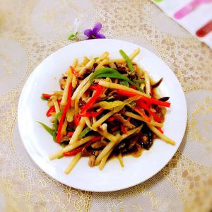 木耳,笋丝焯水沥干,青红椒切丝备用。(因为我就随便放的,没有刻意去称食材的份量,所以就看图吧!)