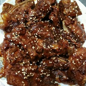 稍留些汤汁,用筷子将排骨夹出摆盘,将锅内的汤汁拎上去,撒些熟芝麻装饰,要是肋排就更漂亮了,期待你们的作品。