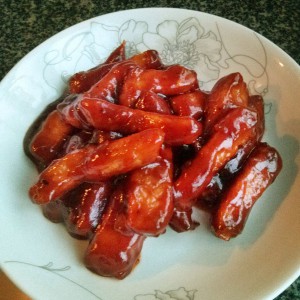 再过一次高温,两次的目的是为了让里脊焦一些,但是我挂糊太稀了