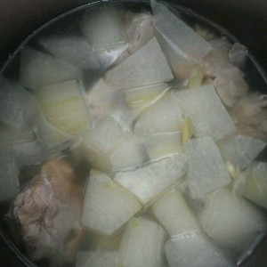 一小时后,下入切好的冬瓜,继续小火炖30分钟。。。