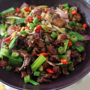 腌制好的鸡块入油锅炸成表皮金黄,将所有配料倒入一起煸炒片刻,沿边洒入料酒,稍焖即可出锅!