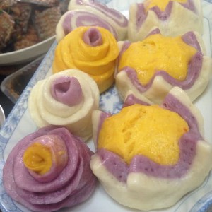 注意我要做紫色面和白色面要做饺子皮那种,黄色做陷