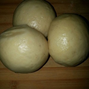 揉圆,塑型。这时候突发奇想,最左边两个面团揉面时候加了燕麦片一起。