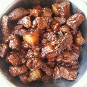 因已经放老抽,腐乳,就不用放盐了,如果觉得淡可以少放一点,大火收汁,ok,可以出锅了。因为老公不爱吃的肥的,就用后丘肉做的,实际上还是觉得五花肉更好吃。