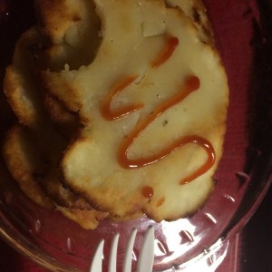 和面。 把变沙的土豆块弄成土豆泥 加面粉适量盐 也可以加点椒盐 不要太多哦 然后和面均匀