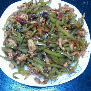 锅中放油,油热先将郫县豆瓣酱放入锅中翻炒,炒出红油后加入肉丝,大火快炒肉变颜色后加入青椒丝,花椒碎。青椒变软后,加少许盐出锅。ps炒豆瓣酱时用中小火,以防炒糊,肉丝时大火快炒,不然容易变老。