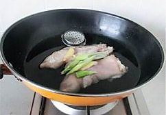 锅中放油,下猪蹄炸至肉皮起泡,盛出