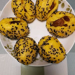 将酵母,白砂糖,盐用一点温开水溶化,搅拌一下待用。此时,把新鲜的南瓜放锅内蒸,直至蒸软。