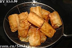 取油锅,放多些油,油温6、7成热时,把处理好的油条放进去炸到酥脆后捞出沥油备用。