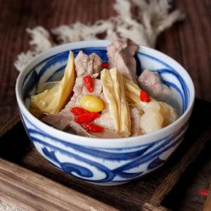然后加入腐竹和盐,继续炖煮10分钟左右