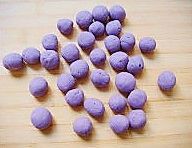 用紫薯糯米粉团,搓成小丸子;
