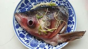 将鱼头用姜丝,料酒,盐,胡椒粉腌半小时,去除腥味。