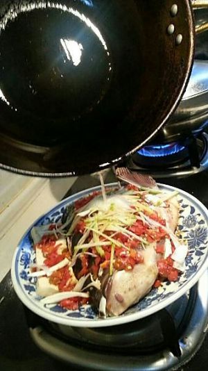 大火开锅后,放笼屉中蒸20分钟,具体时间也要看鱼的大小,这条鱼比较大,所以时间久些。