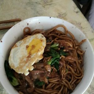 6.再煎个鸡蛋放在炒面上。要是再配上一碗紫菜汤什么的,就更完美了。